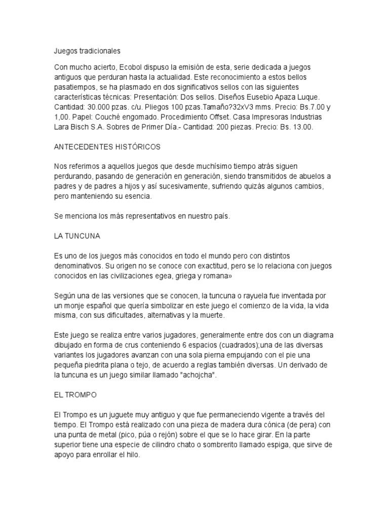 Juego tradicional colombiano stop es un juego tradicional colombiano, el cual es practicado en varios departamentos del país, como del tiempo por los cambios e intereses de las nuevas generaciones de niños niñas y jóvenes quienes buscan e inventan nuevas maneras de jugar. Los juegos de patio son los juegos infantiles clásicos , que se realizan sin ayuda de juguetes tecnológicamente complejos, sino con el propio cuerpo o con recursos fácilmente disponibles en la naturaleza (arena, rocas, ciertos huesos como las tabas, hojas, flores, palos, colores. Los juegos tradicionales han pasado de generación a generación durante siglos. Vídeo tutorial sobre un juego tradicional de perú realizado los alumnos enrique alejandro espino, francisco palomar y jaime mata de tafadmadrid torrejón de. Los juegos tradicionales son los juegos infantiles clásicos o.